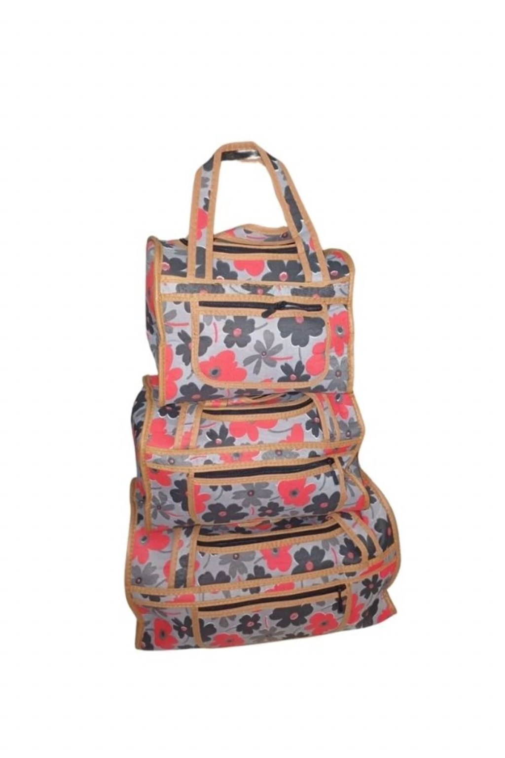 - Şık ve gece ortamları için ideal, çiçek desenleriyle süslenmiş 3'lü valiz seti; - Her biri farklı bir çiçek deseniyle tasarlanmış, seyahatlerinizde tarzınızı yansıtmanızı sağlayan 3'lü bavul seti; - Çiçek desenleriyle göz alıcı bir görünüm sunan, hem iş hem de tatil seyahatlerinizde kullanabileceğiniz 3'lü çanta seti;