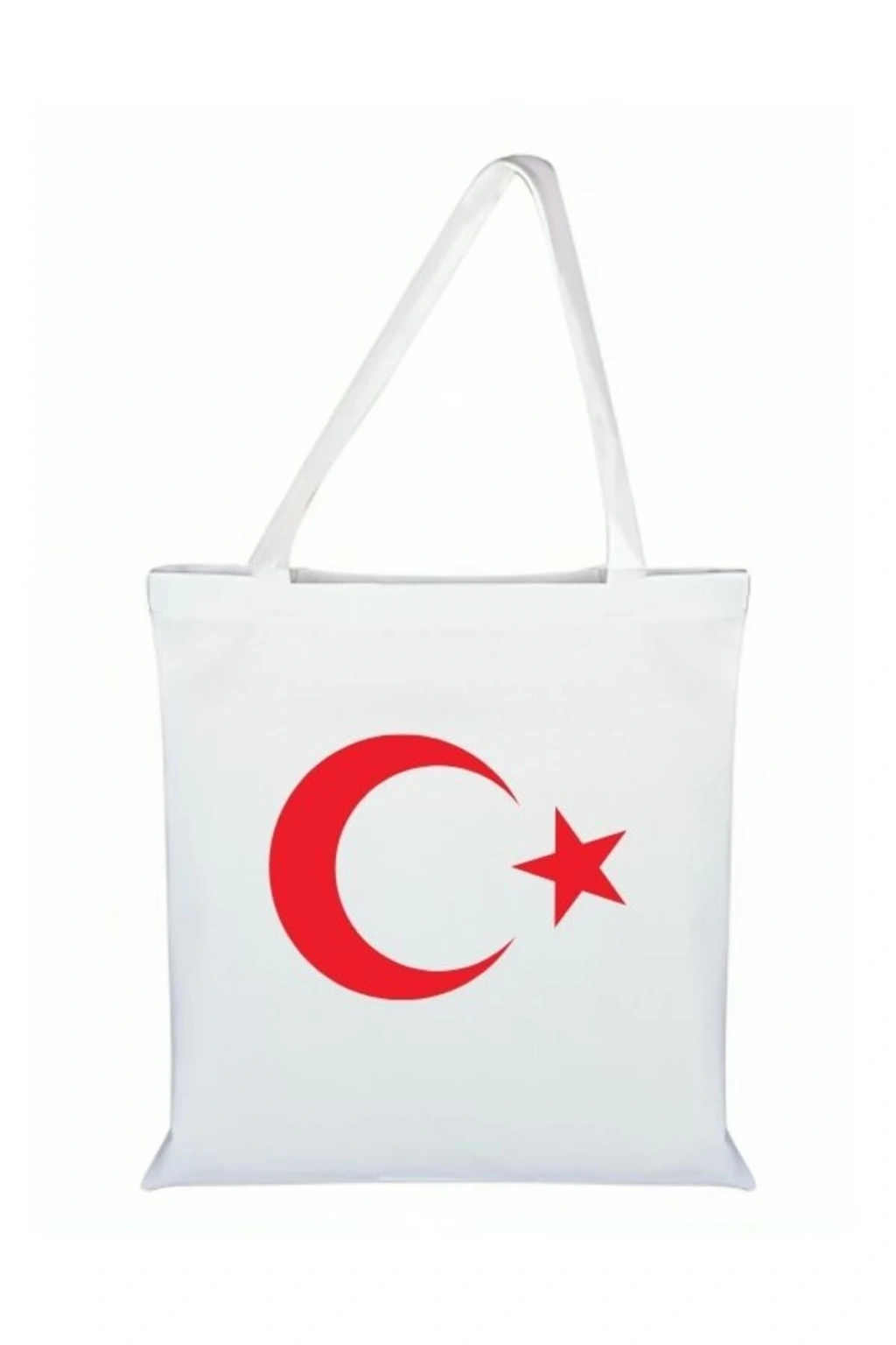 Ay Yıldız Baskılı Bez Çanta - Ay Yıldızlı Çanta