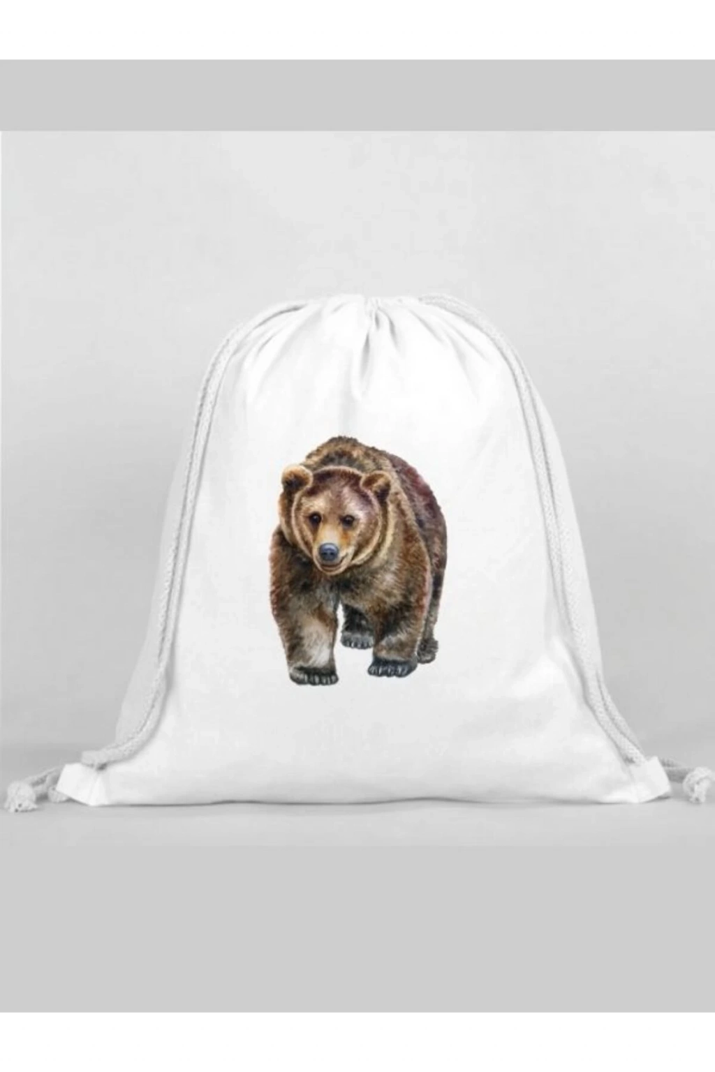 Ayı Baskılı Sırt Çantası - İp Büzgülü Spor Çanta