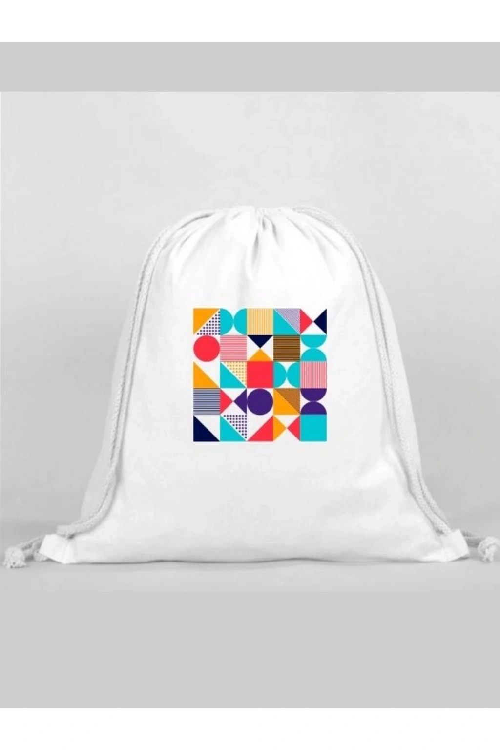 Geometrik Baskılı Sırt Çantası - İp Büzgülü Spor Çanta