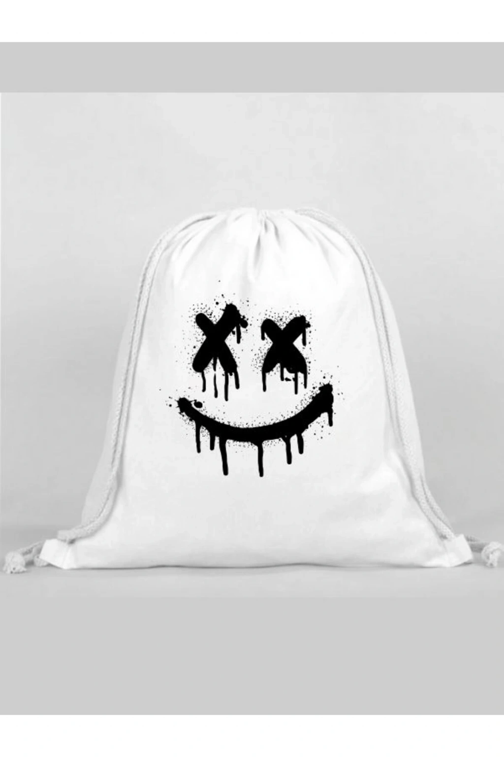 Gülen Surat Baskılı Sırt Çantası - İp Büzgülü Spor Çanta