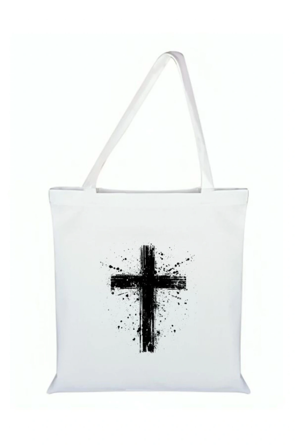Haç İşareti Baskılı Bez Çanta - Haç İşaretli Çanta