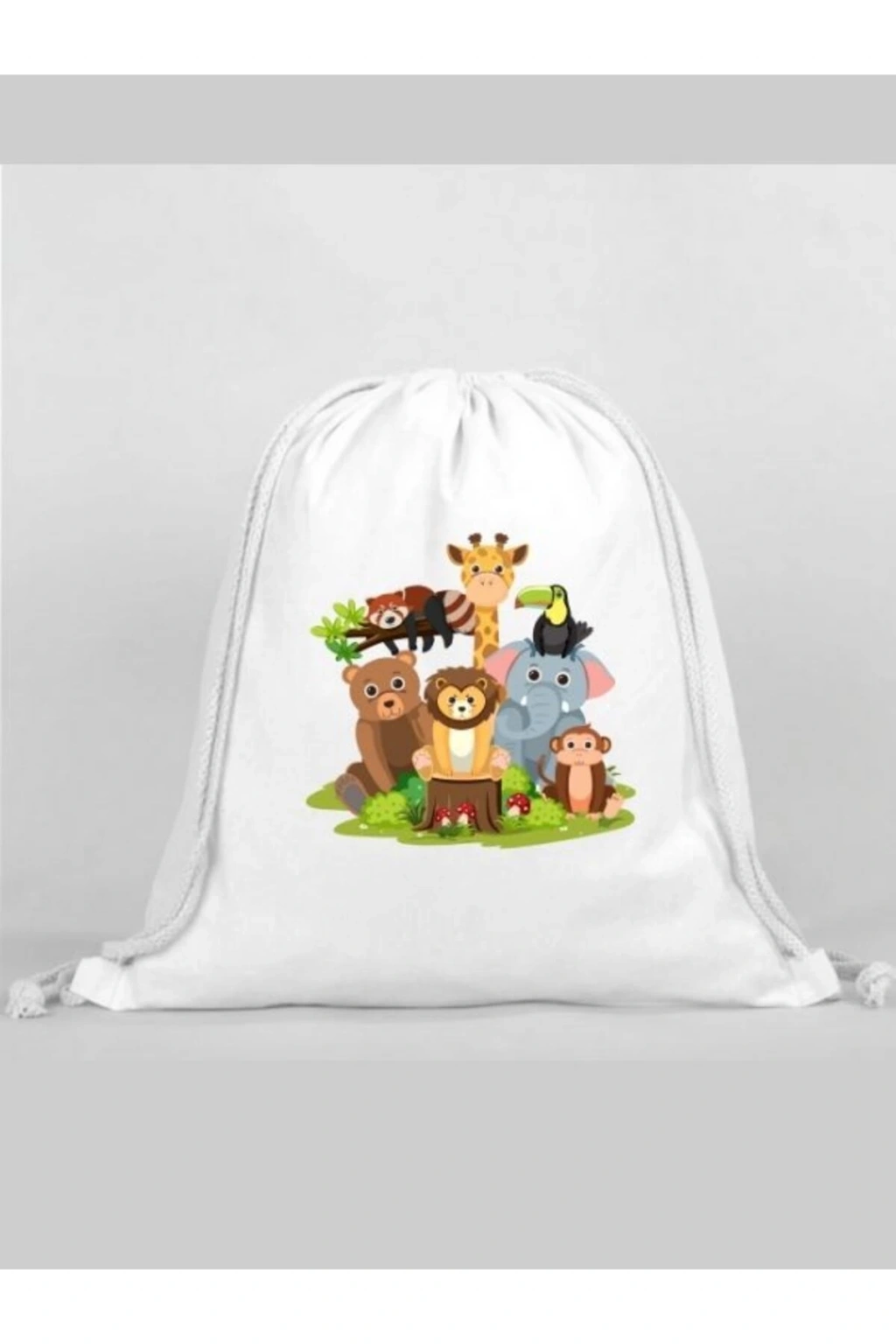 Hayvanlar Baskılı Sırt Çantası - İp Büzgülü Spor Çanta