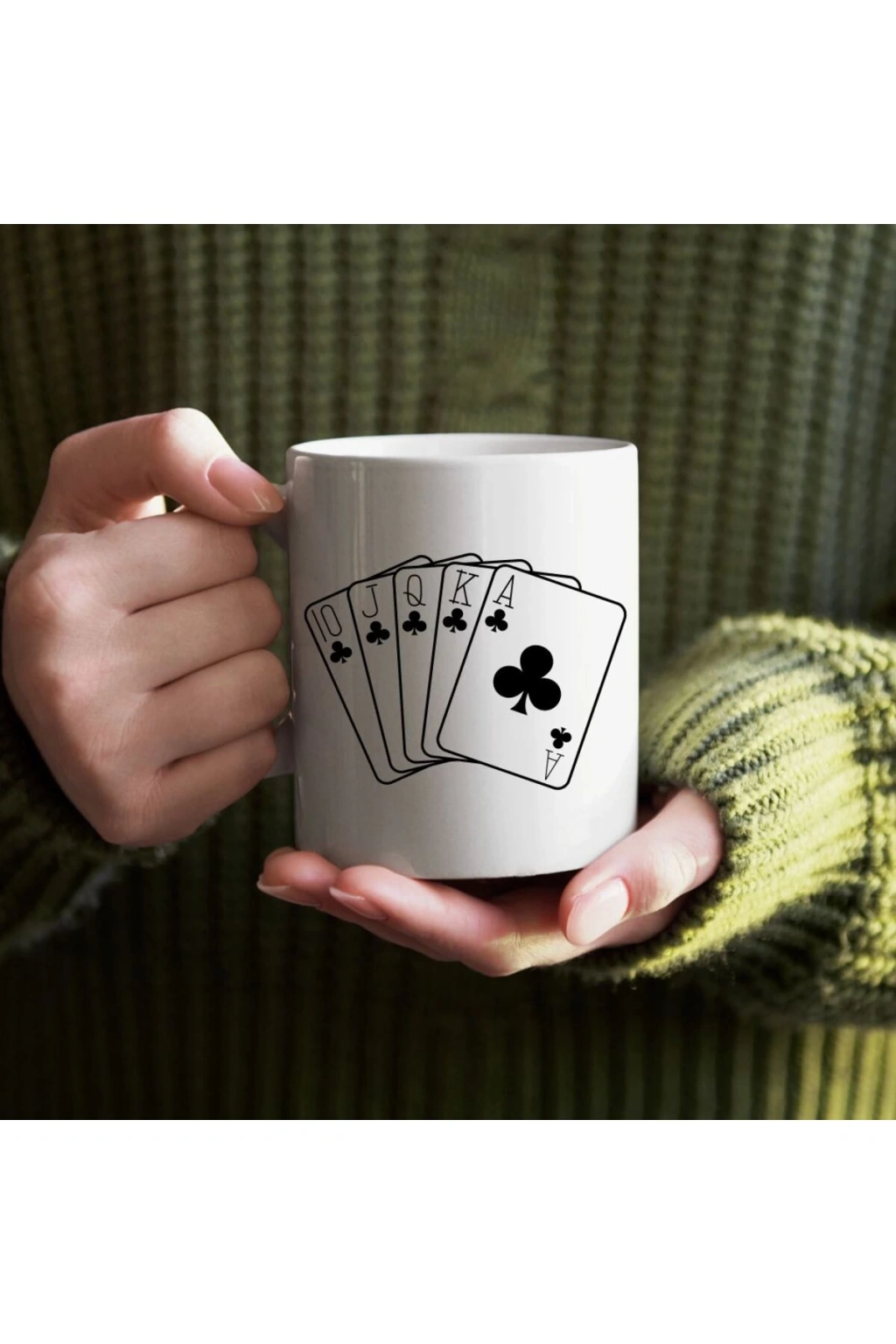 Yüksek kaliteli porselen malzemesi ile üretilmiş, uzun ömürlü ve dayanıklı kullanım sunar; Oyun kağıtları tasarımı, oyun severlerin keyifli anlarını bardaklarıyla taçlandırır; Iskambil kağıtları ile süslenmiş bu bardak, masaüstünüzde şık bir aksesuar olarak yerini alır; Porselen yapısı sayesinde sıcak içeceklerinizi keyifle yudumlayabileceğiniz ideal bir seçenektir;