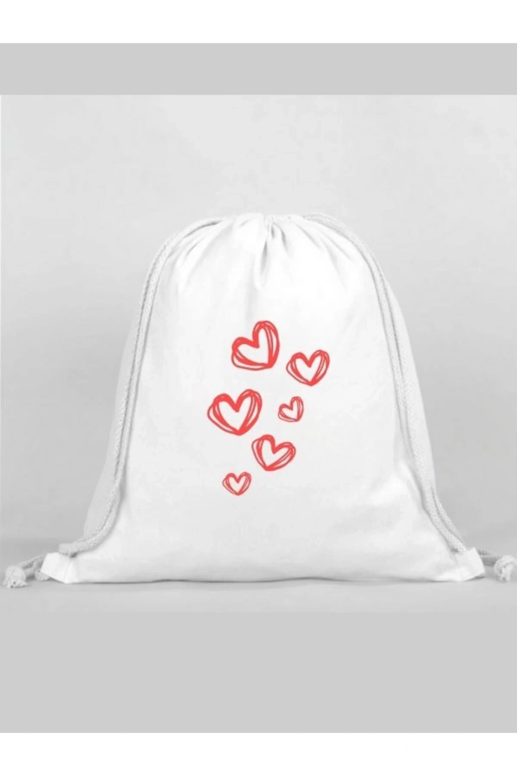 Kalp Baskılı Sırt Çantası - İp Büzgülü Spor Çanta