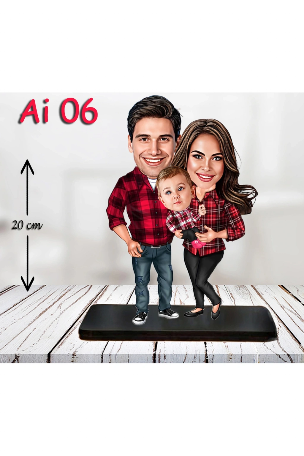 Kişiye Özel Ahşap Biblo - Aile Karikatür Biblo - 3 Kişilik Aile Biblo 6