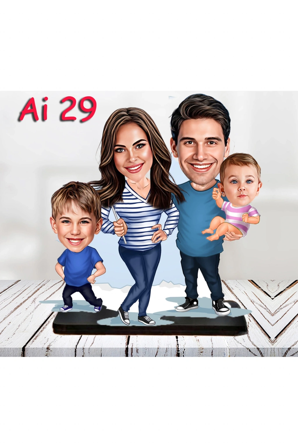 Kişiye Özel Ahşap Biblo - Aile Karikatür Biblo - 4 Kişilik Aile Biblo 12