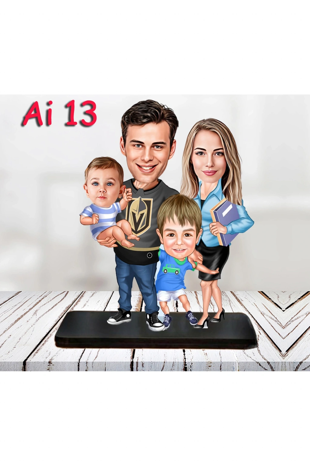 Kişiye Özel Ahşap Biblo - Aile Karikatür Biblo - 4 Kişilik Aile Biblo 6