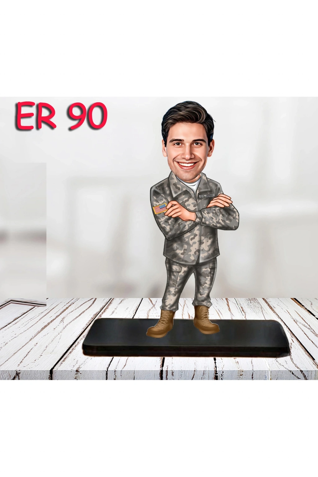 Kişiye özel tasarımıyla dikkat çeken bu ahşap biblo, asker temalı karikatür figürüyle hem eğlenceli hem de anlamlı bir hediye seçeneği sunar; Retro stilin özgün çizgilerini taşıyan bu dekoratif obje, evinizin veya ofisinizin atmosferine nostaljik bir dokunuş katar; Dayanıklı ahşap malzemesi sayesinde uzun yıllar boyunca formunu koruyarak, sevdiklerinize kalıcı bir hatıra bırakmanızı sağlar;