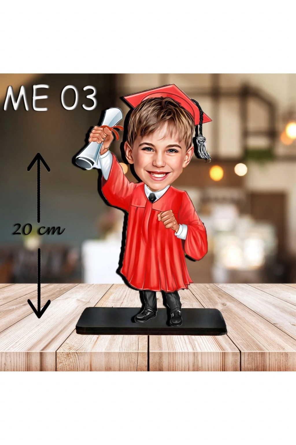 Retro tasarımı ile nostaljik bir hava katan bu ahşap biblo, mekanınıza otantik bir dokunuş ekler; Doğal ahşap malzemesi sayesinde uzun ömürlü kullanım sunar ve her türlü iç mekan dekorasyonuyla uyum sağlar; Kişiye özel olarak tasarlanmış bu karikatür figürü, çocuğunuzun veya sevdiğiniz birinin özel gününü anımsatır ve ona özel bir hediye seçeneği sunar;