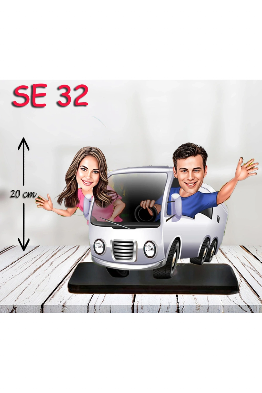 Kişiye Özel Ahşap Biblo - Otobüs Kullanan Çift