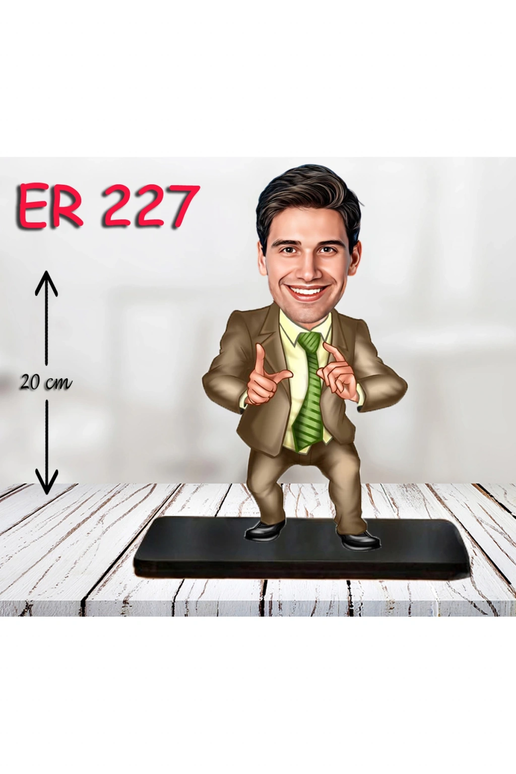 - Ahşap malzemesiyle üretilmiş, dayanıklı ve uzun ömürlü kullanım sunar; - Retro tasarımı ile ev ve ofis dekorasyonunuza nostaljik bir hava katar; - Kişiye özel tasarım, sevdiklerinize anlamlı ve benzersiz bir hediye alternatifi sunar; - Takım elbiseli erkek karikatür figürü, mizahi ve eğlenceli bir dokunuşla mekanınıza neşe getirir;