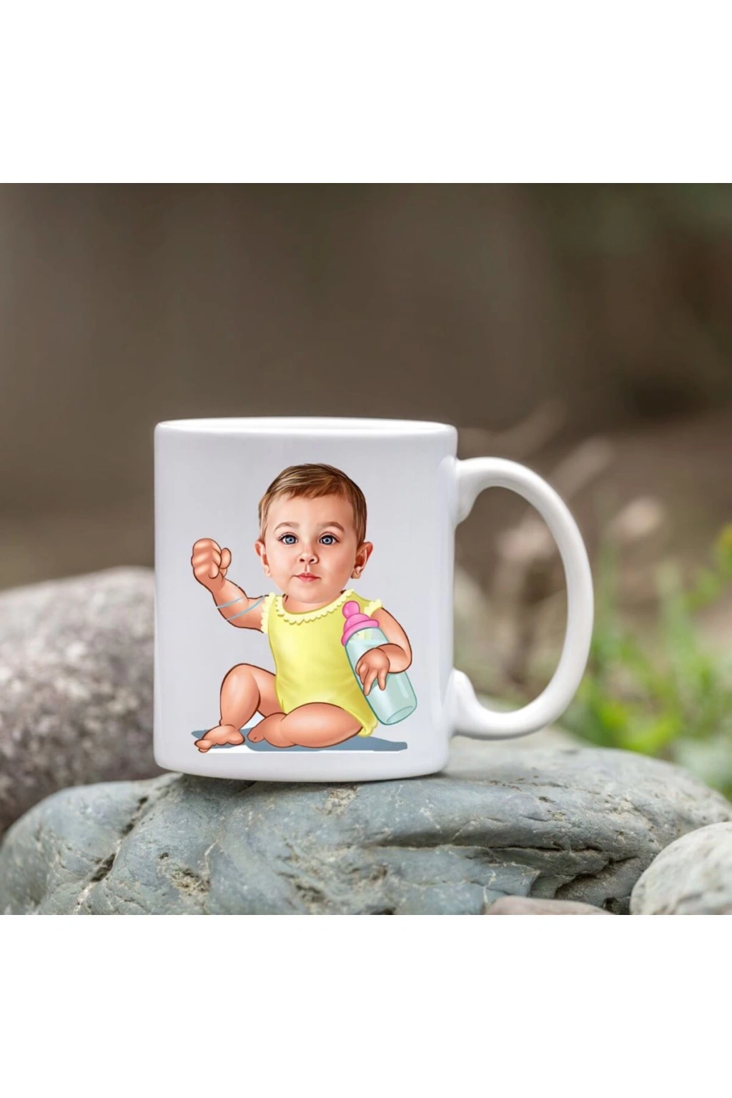Yüksek kaliteli porselen malzemesi sayesinde uzun ömürlü kullanım sunar ve dayanıklılığı ile öne çıkar; Kişiye özel tasarımıyla, sevdiklerinize özel bir hediye olarak düşünceli bir dokunuş sağlar; Karikatür temalı tasarımıyla eğlenceli ve neşeli bir görünüm sunar, günlük kullanım için idealdir; Bebeğim bardağı olarak adlandırılan bu özel tasarım, sevgi dolu anları simgeler ve her yudumda sevginizi hissettirir;