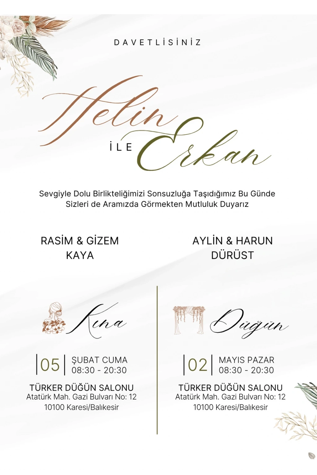 - Özel günlerinizde unutulmaz anılar yaratmanız için mükemmel bir seçenektir; her davetiye benzersizdir ve kişisel mesajlarınızla özelleştirilebilir.
