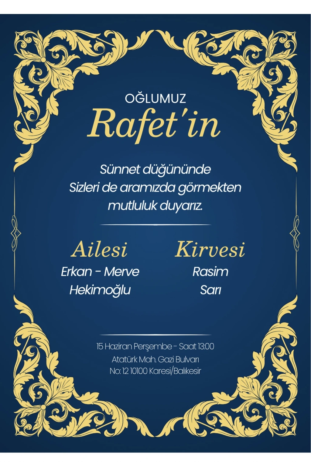 Kişiye Özel Davetiye - Sünnet Davetiye - Sünnet Davetiyesi ( Zarflı ) ( 50 Adet ) Model 3