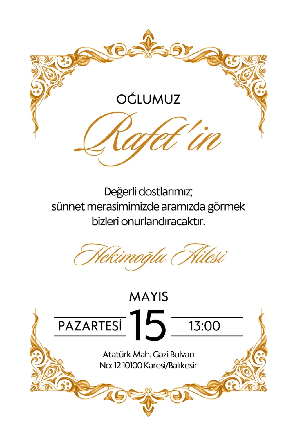 Kişiye Özel Davetiye - Sünnet Davetiye - Sünnet Davetiyesi ( Zarflı ) ( 50 Adet ) Model 3