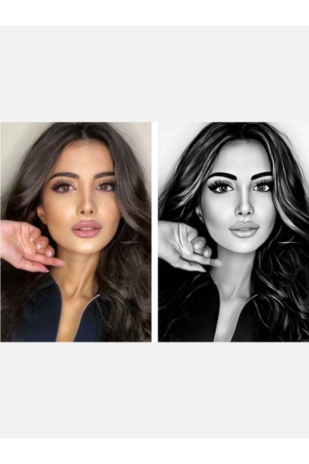 Kişiye özel karakalem tasarımı, 21 cm x 30 cm boyutlarıyla dikkat çeker ve dekoratif objeler arasında benzersiz bir yer edinir; Retro temalı tasarımıyla nostaljik bir hava katar ve mekanınıza vintage bir dokunuş sağlar; Kağıt materyali sayesinde hafif ve kolay taşınabilir olup, istenilen yere rahatlıkla yerleştirilebilir;