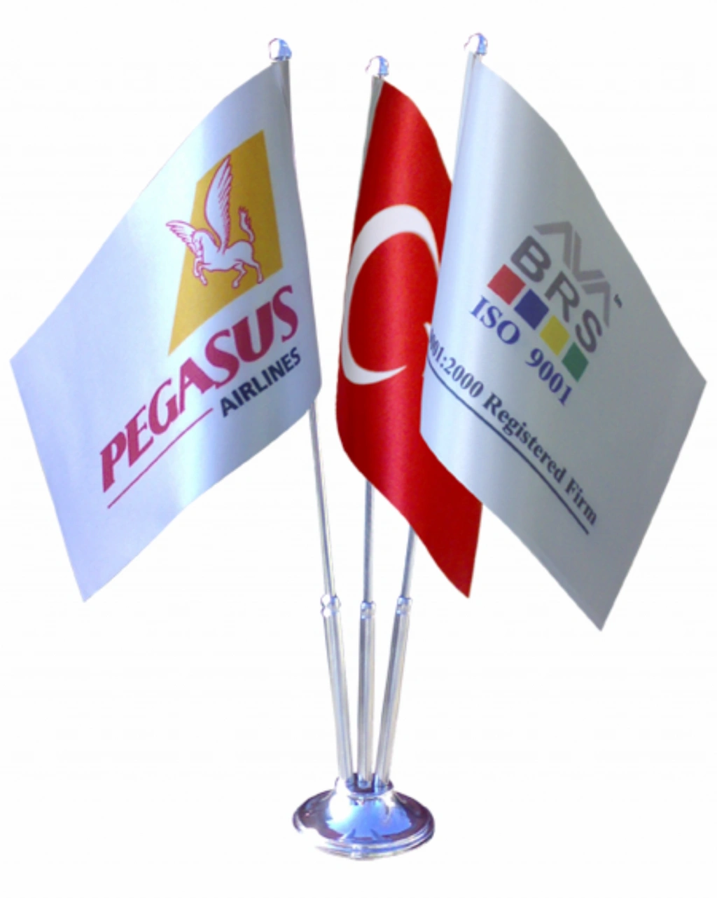 Kişiye Özel Masa Bayrağı - Firmaya Özel Üç Direkli Logolu Masa Üstü Bayrak