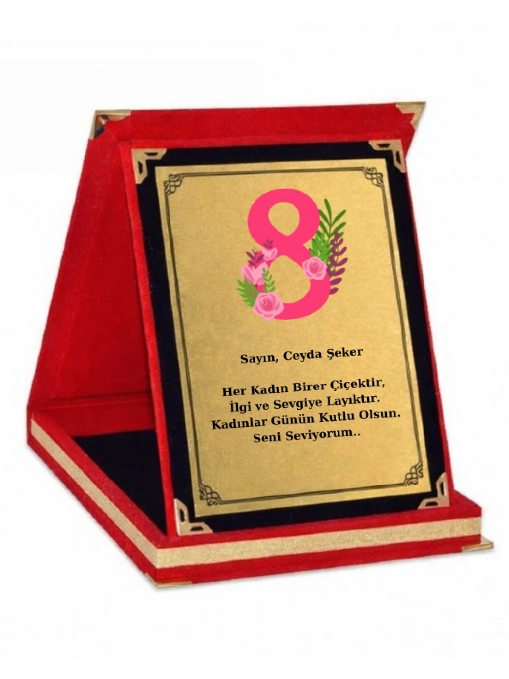 Kişiye Özel Plaket - Kişiye Özel Kadife Plaket - Kadınlar Günü Plaketi - Büyük Boy Plaket ( 16 X 21 )
