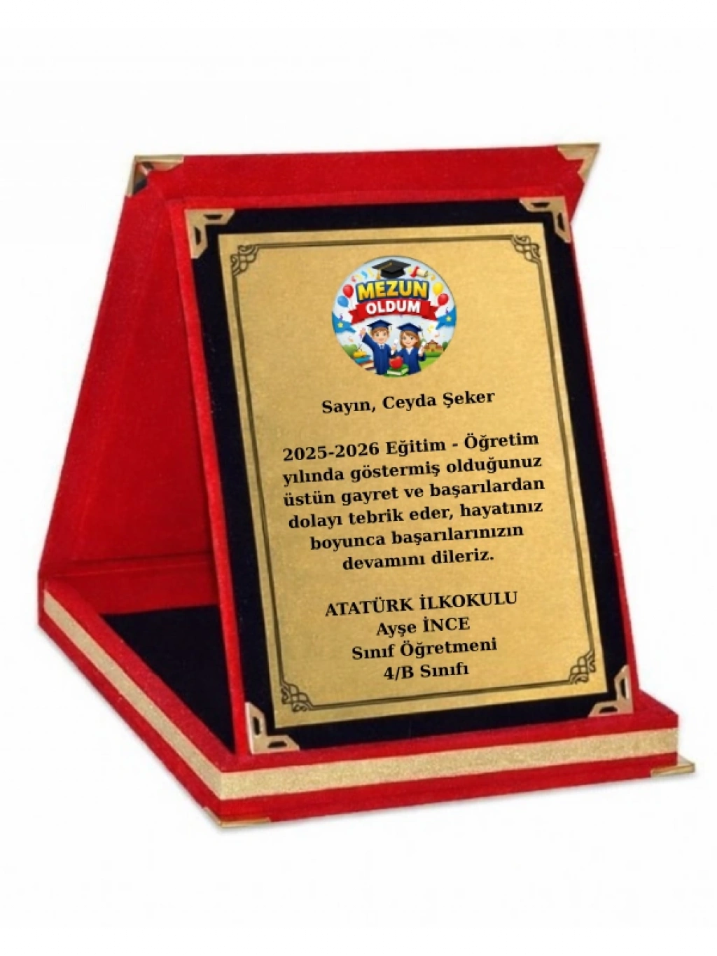 Kişiye Özel Plaket - Kişiye Özel Kadife Plaket - Mezuniyet Plaketi - Büyük Boy Plaket ( 16 X 21 )