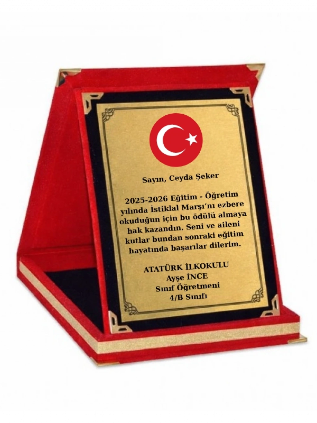 Kişiye Özel Plaket - Kişiye Özel Kadife Plaket - İstiklal Marşı Plaketi - Büyük Boy Plaket ( 16 X 21 )