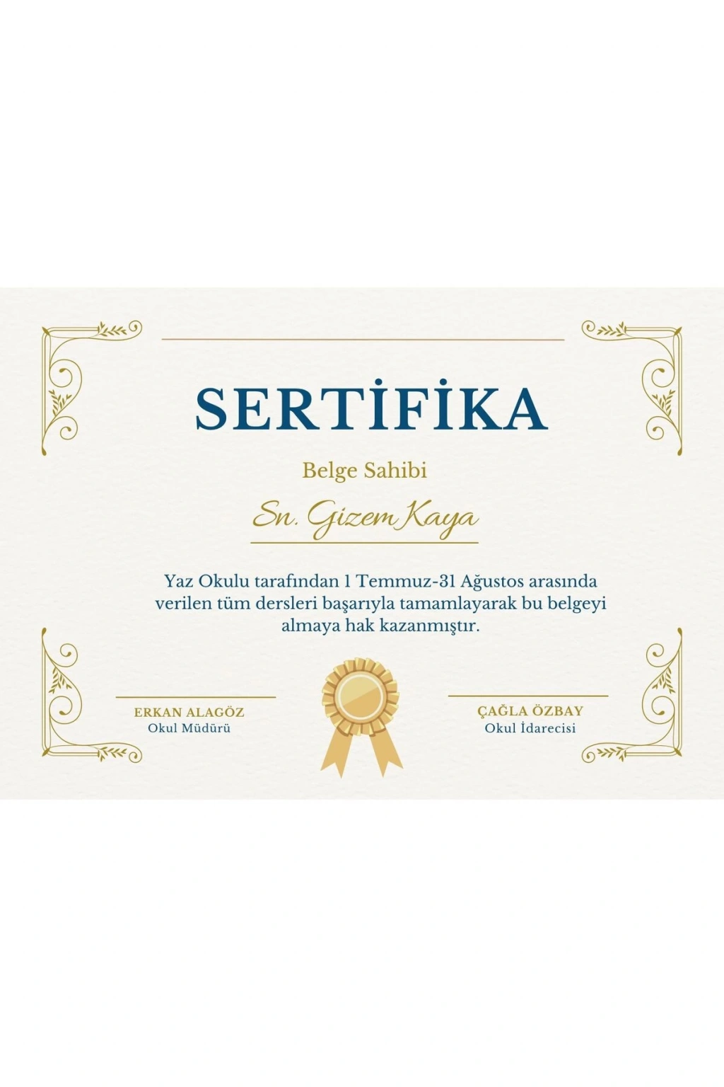 Kişiye Özel Sertifika - Mezuniyet Sertifikası - Başarı Sertifikası ( 10 Adet )