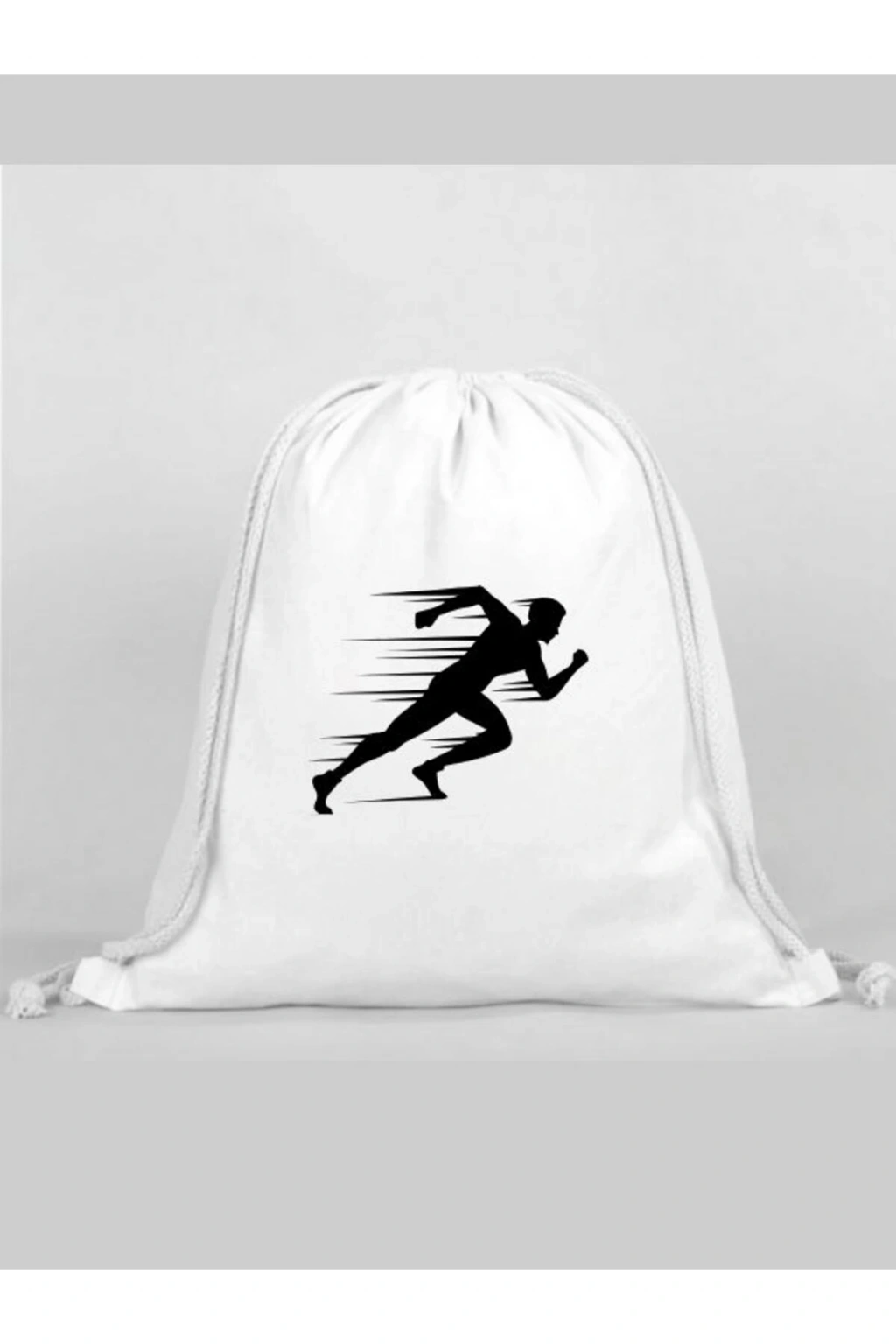 Sporcu Baskılı Sırt Çantası - İp Büzgülü Spor Çanta