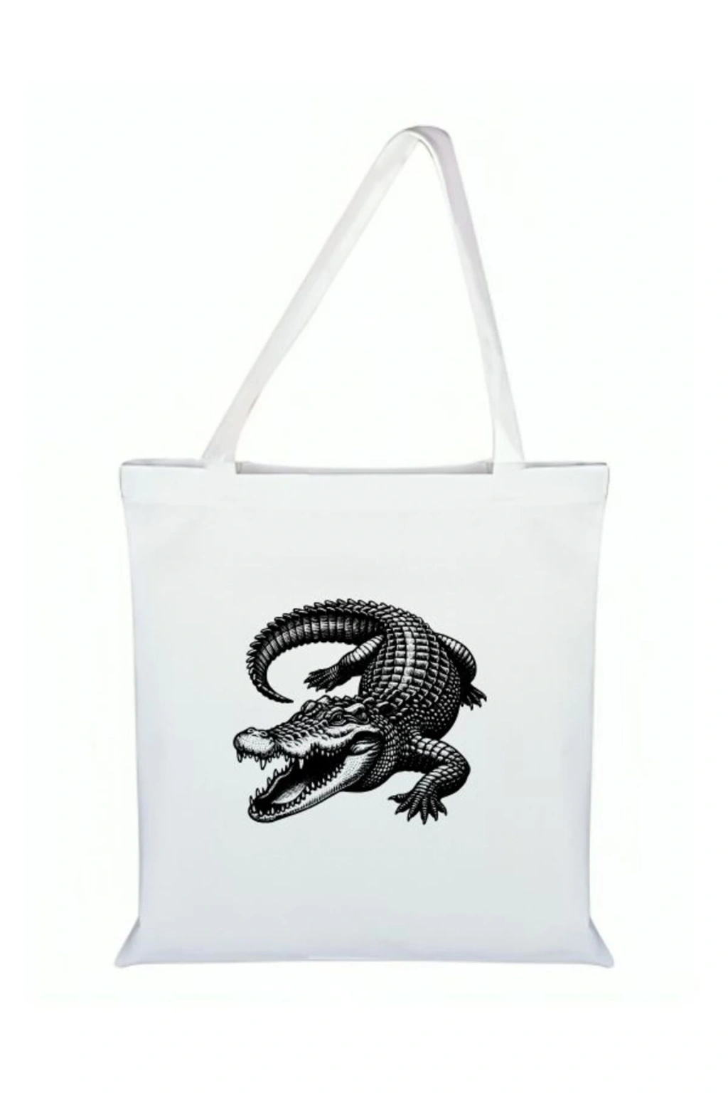 Timsah Baskılı Bez Çanta - Timsahlı Çanta